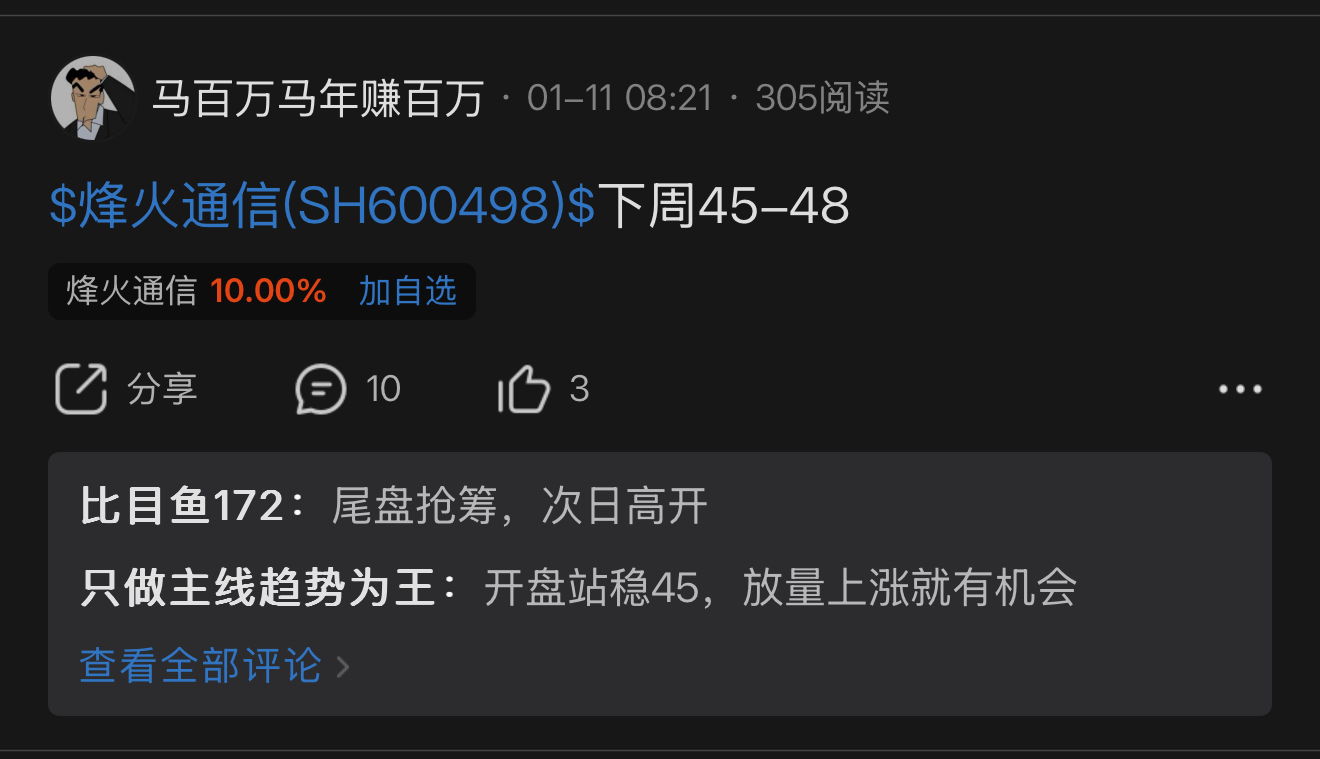 温馨提示: 1.根据《证券法》规定,禁止编造、传播虚假信息或者误导性信息,扰乱证券市场;2.用户在本社区发表的所有资料、言论等仅代表个人观点,与本网站立场无关,不对您构成任何投资建议。用户应基于自己的独立判断,自行决定证券投资并承担相应风险。《东方财富社区管理规定》