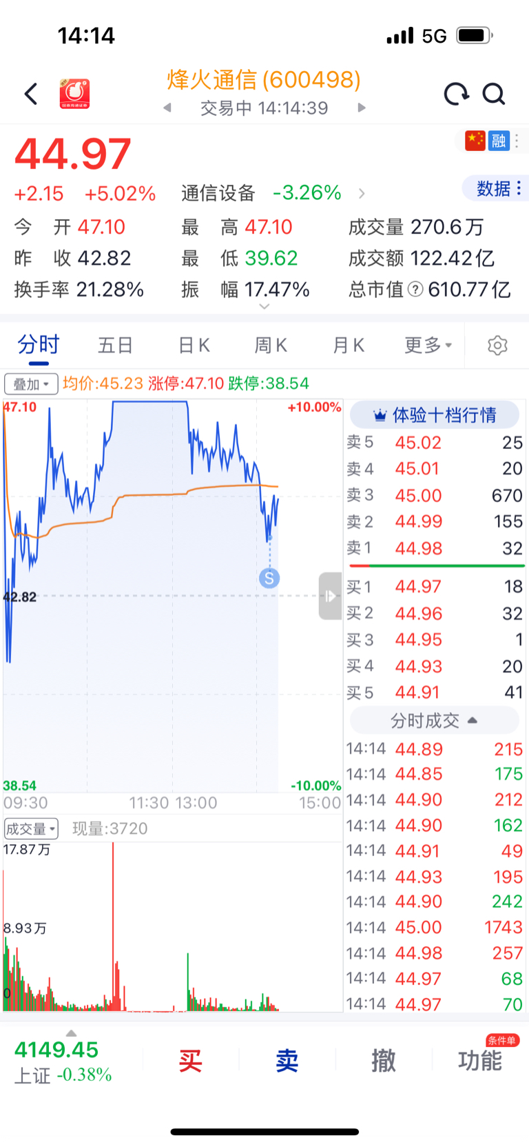 $烽火通信(SH600498)$ 服了 最低走的