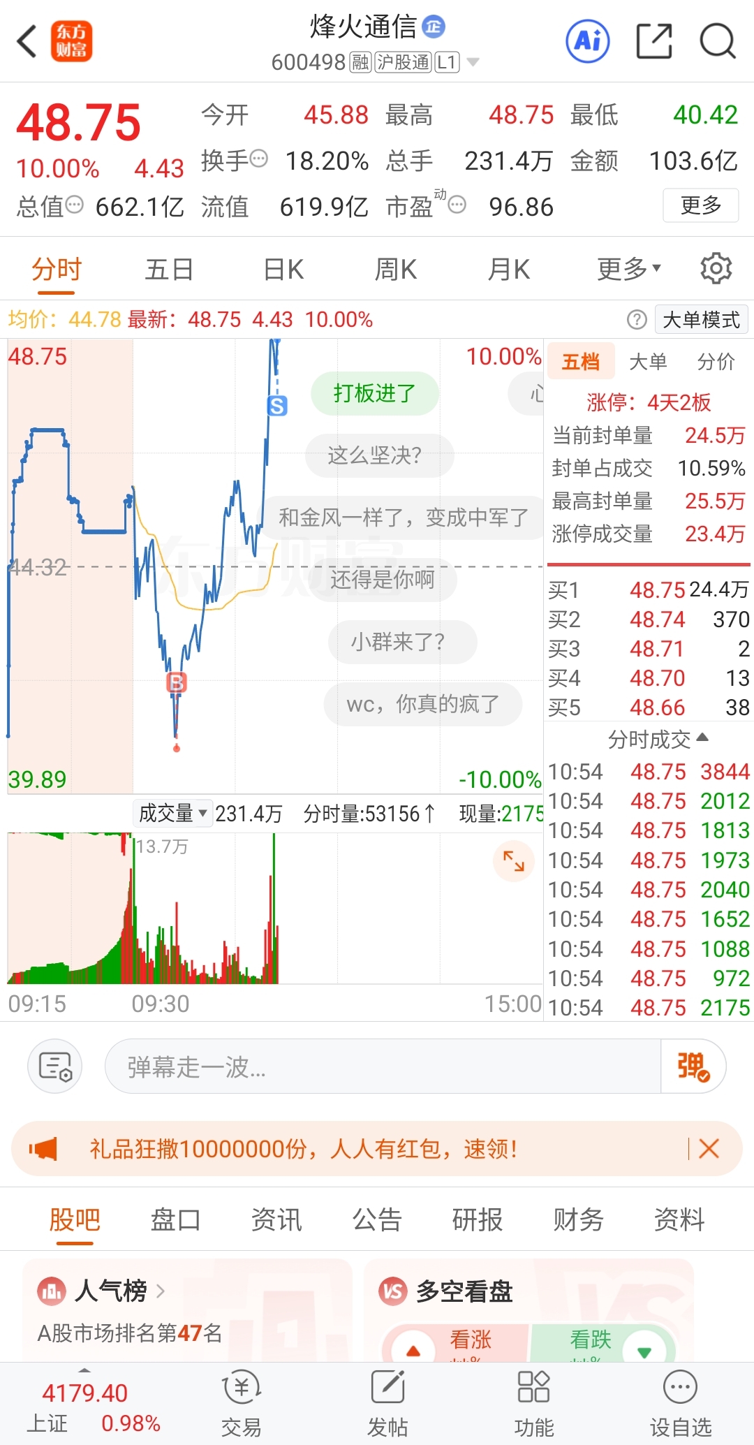 $烽火通信(SH600498)$