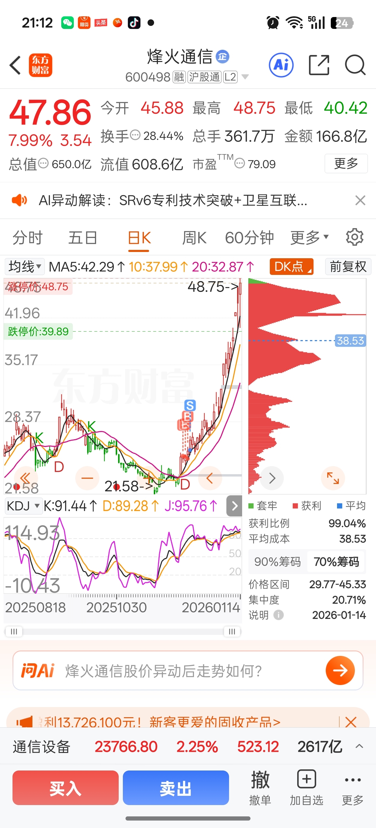 $烽火通信(SH600498)$ 倒在黎明前