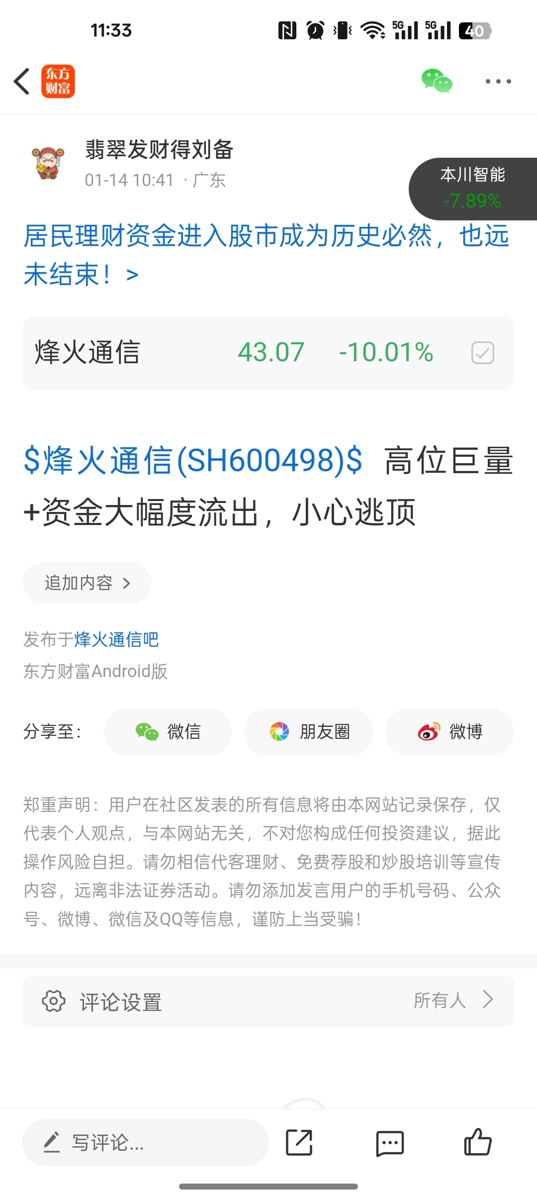 温馨提示: 1.根据《证券法》规定,禁止编造、传播虚假信息或者误导性信息,扰乱证券市场;2.用户在本社区发表的所有资料、言论等仅代表个人观点,与本网站立场无关,不对您构成任何投资建议。用户应基于自己的独立判断,自行决定证券投资并承担相应风险。《东方财富社区管理规定》