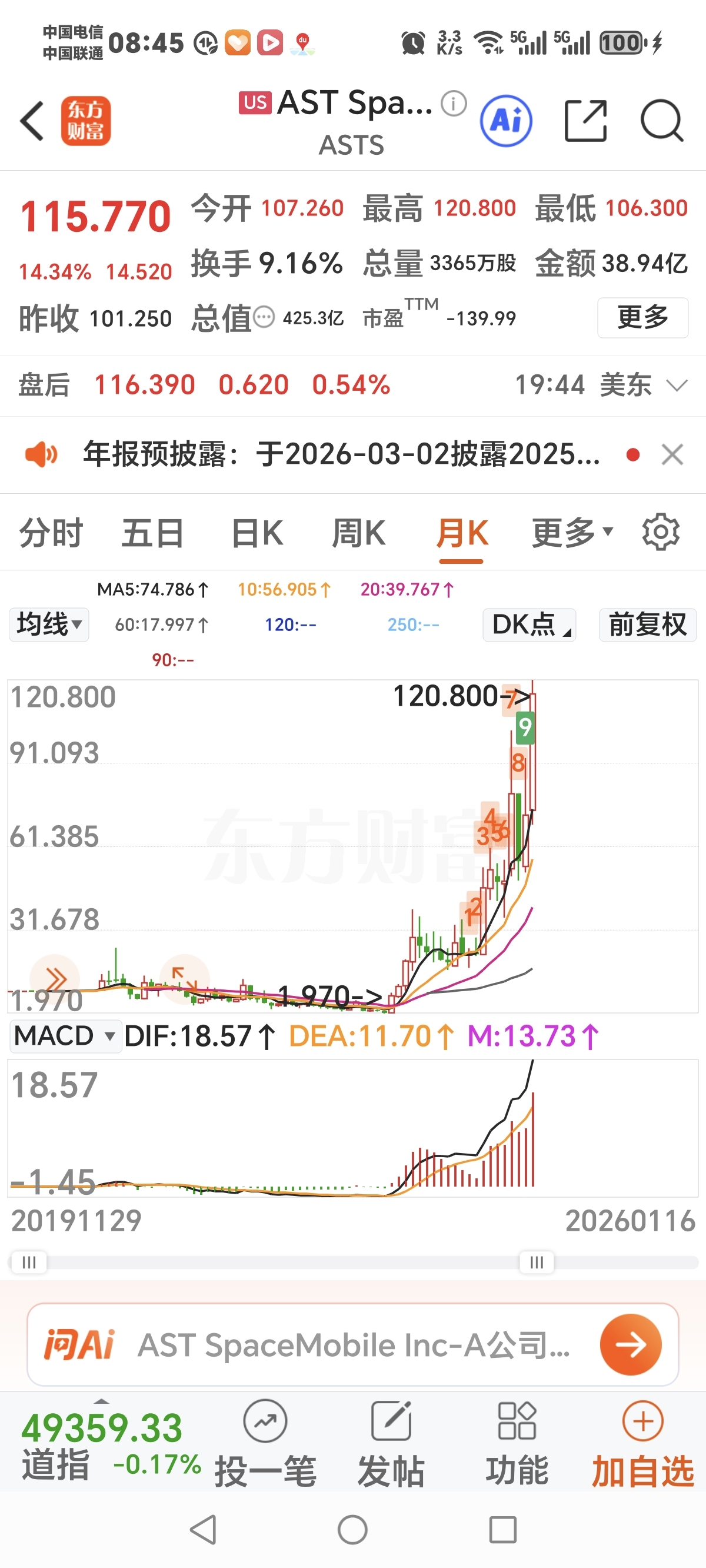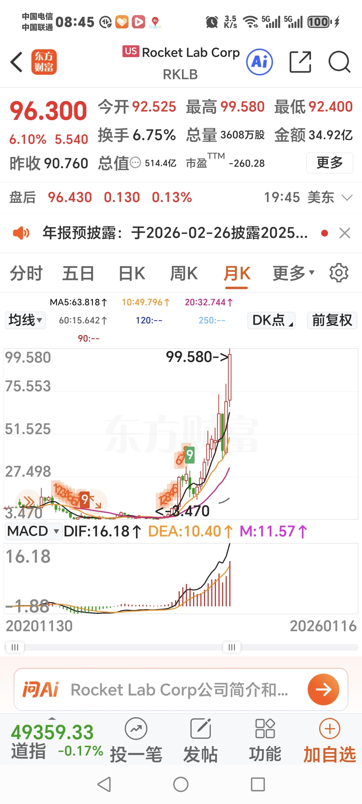 美国商业航天板块昨晚暴涨,龙头股历史新高了,从底部上来已经100倍了。