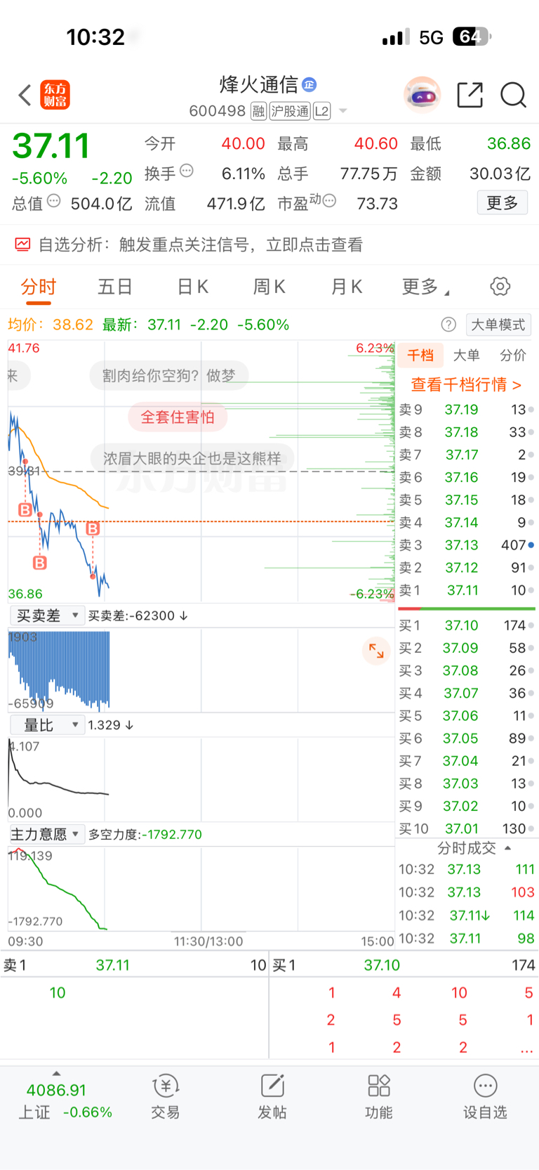 $烽火通信(SH600498)$ 有毛病吧?着一点逻辑没有的跌