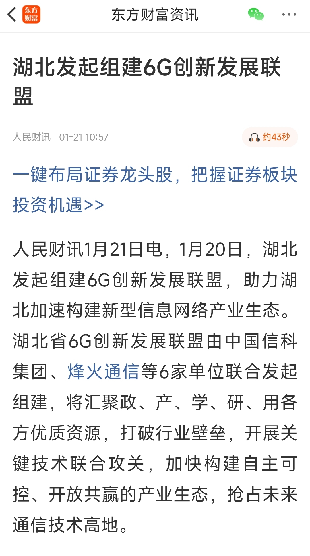 烽火通信到底有没有6G技术怎么板块里面找不到