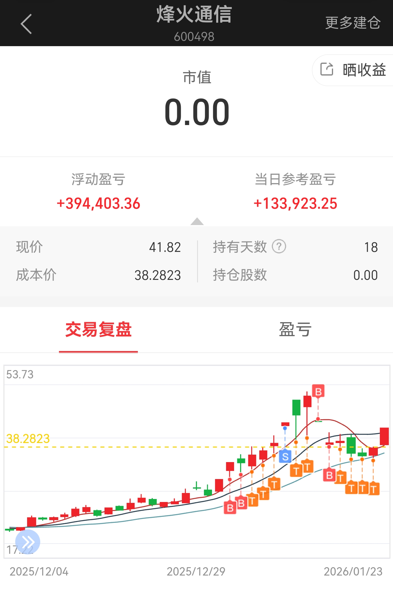 $烽火通信(SH600498)$ 今天清仓了,落袋为安,下周踏空也无所谓了反正不是第一次。