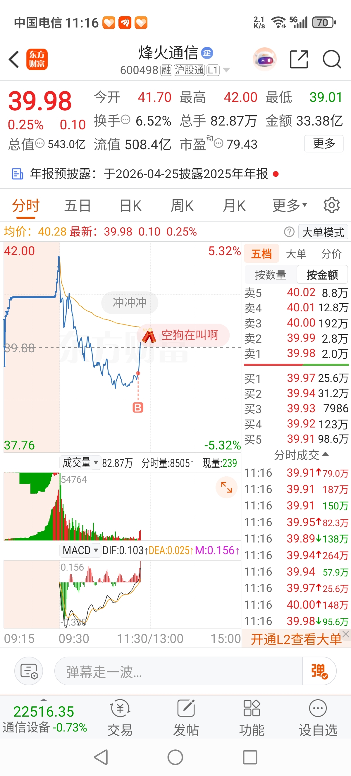 $烽火通信(SH600498)$ 兄弟们我点火了