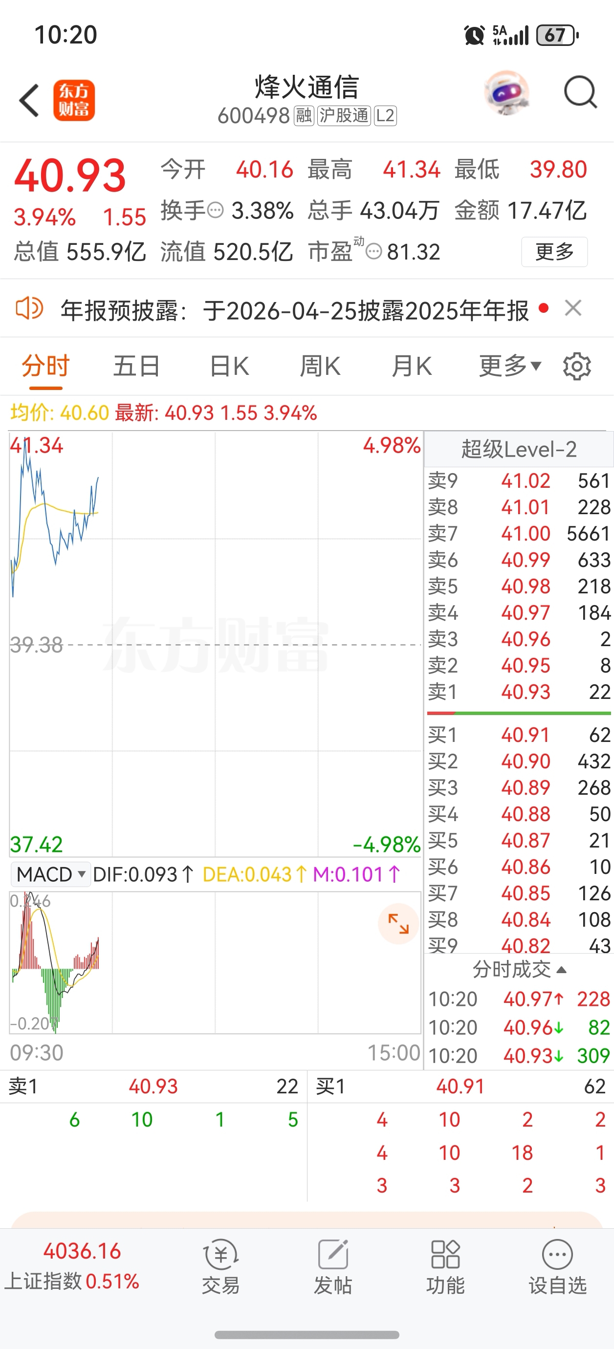 $烽火通信(SH600498)$ 41多大的压单