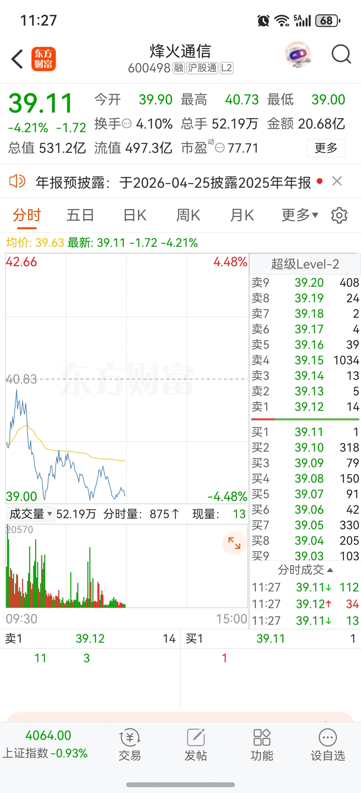 $烽火通信(SH600498)$ 放量下跌 反弹太弱 下午看了 AI都错过了