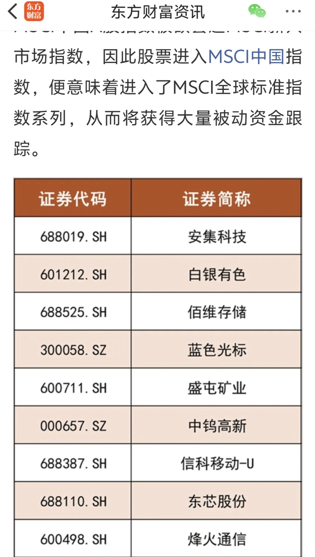 $烽火通信(SH600498)$ 重要调整!MSCI中国A股指数新纳入33只股票(附表格)