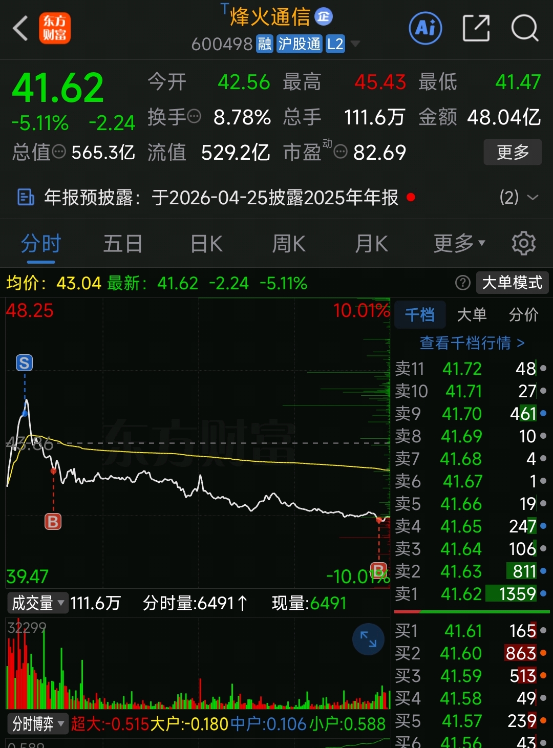 $烽火通信(SH600498)$ 我还没吃饱,明天再跌继续加仓