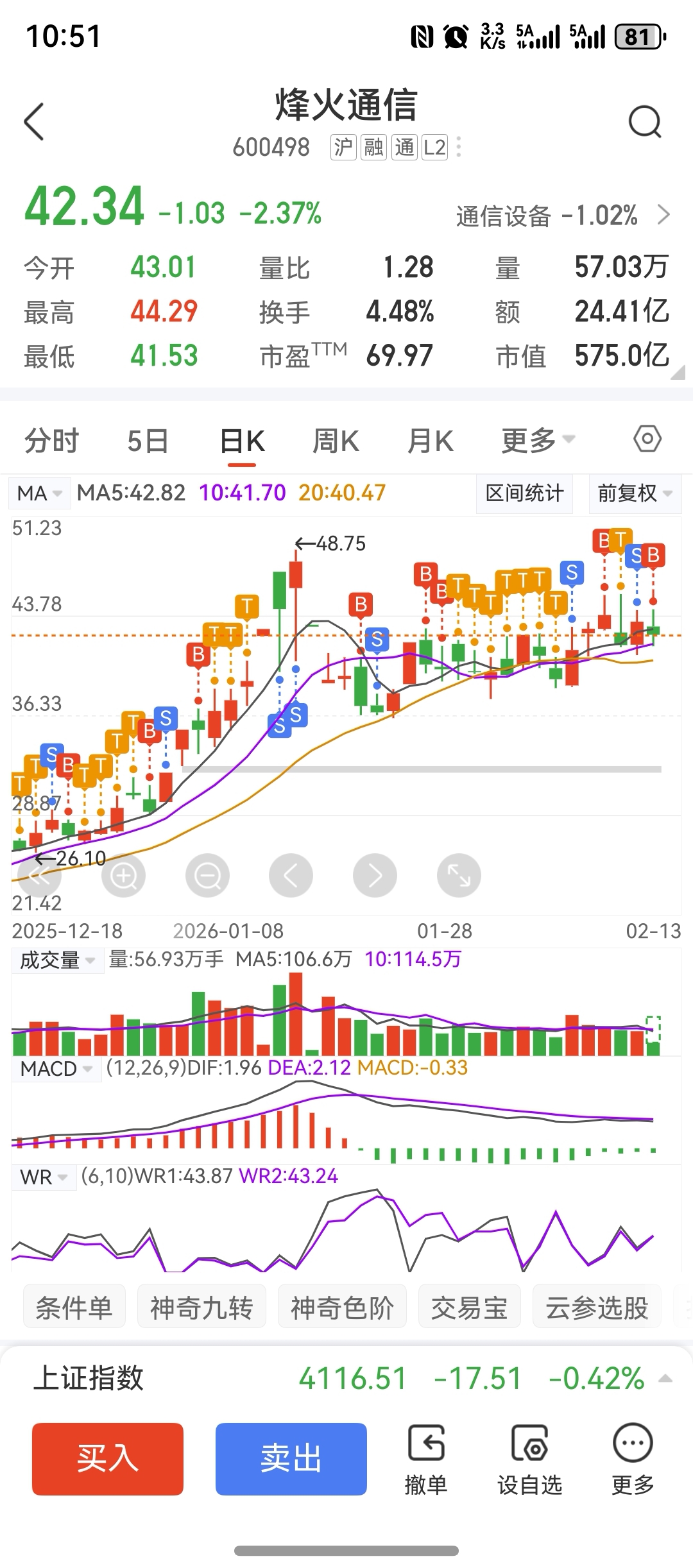 $烽火通信(SH600498)$ 昨天大涨卖了 想着过年了 很多人肯定变现 把便宜筹码割肉给我