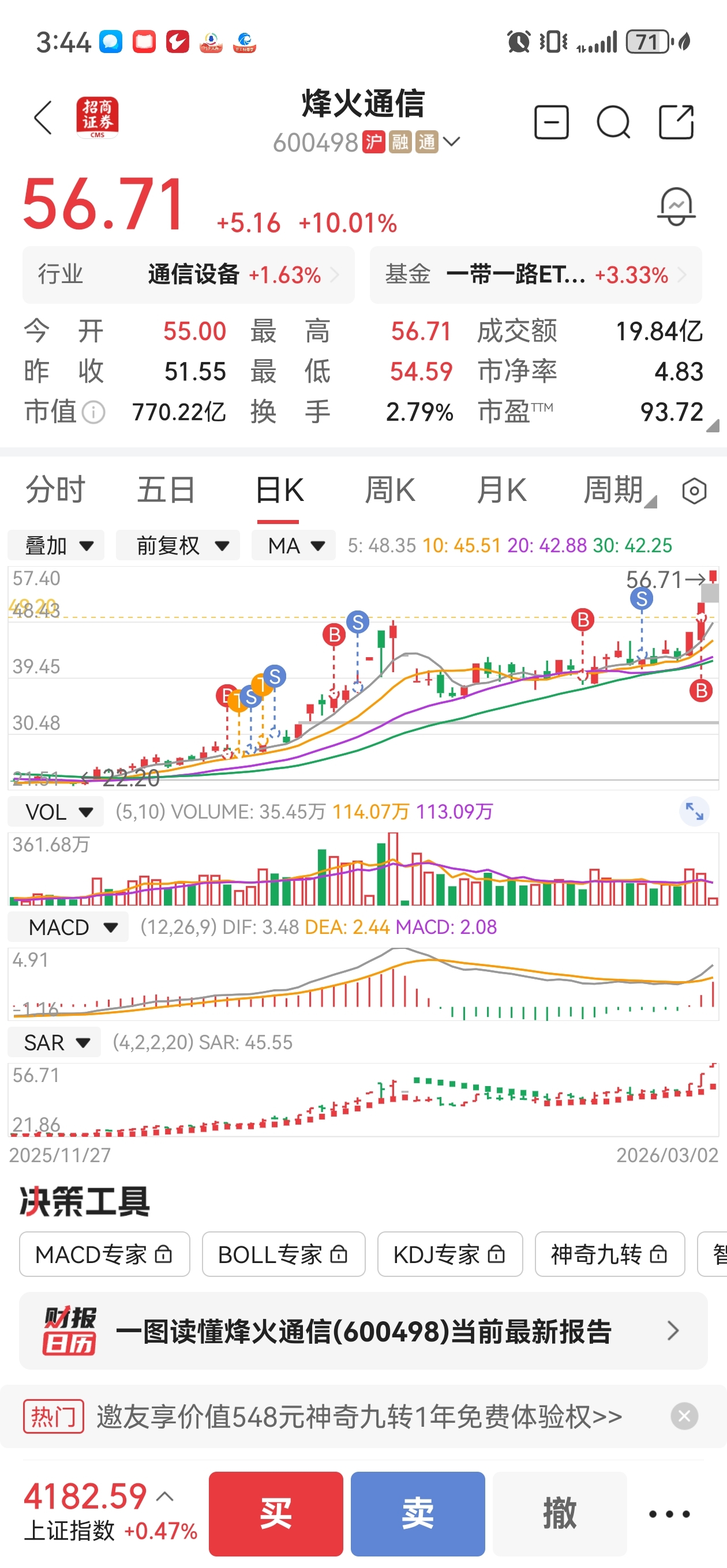 $烽火通信(SH600498)$ 不说了。缩量涨停,感觉还有希望。看看明天吧。