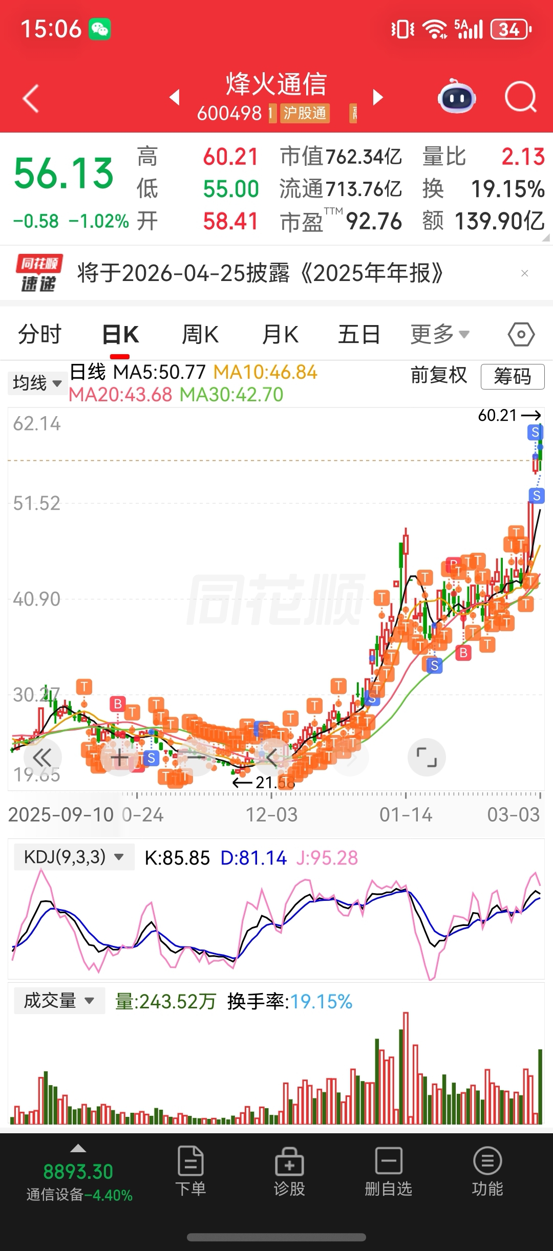 感谢烽火通信,有缘再见。祝你上500,秒长飞光纤。