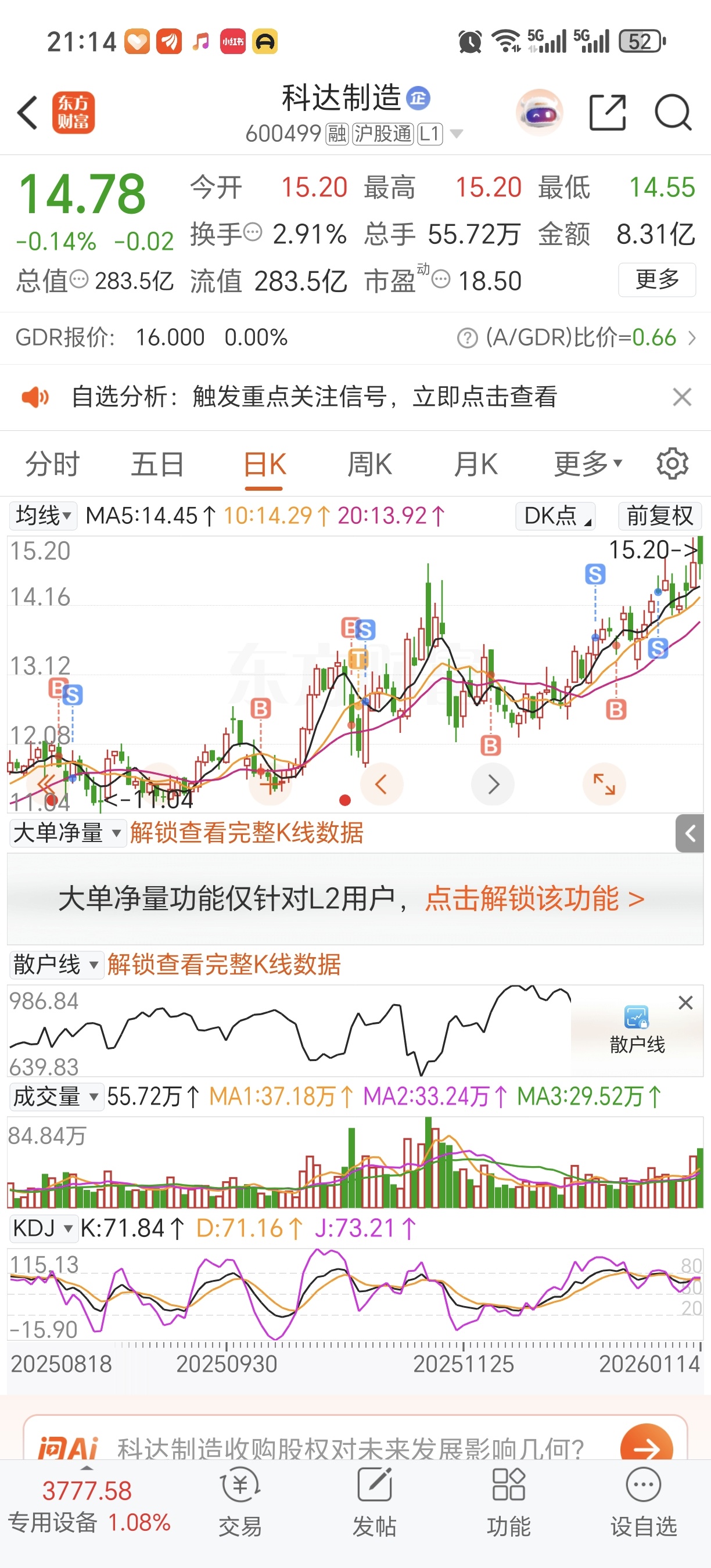 $科达制造(SH600499)$ 期待明天的鸡腿