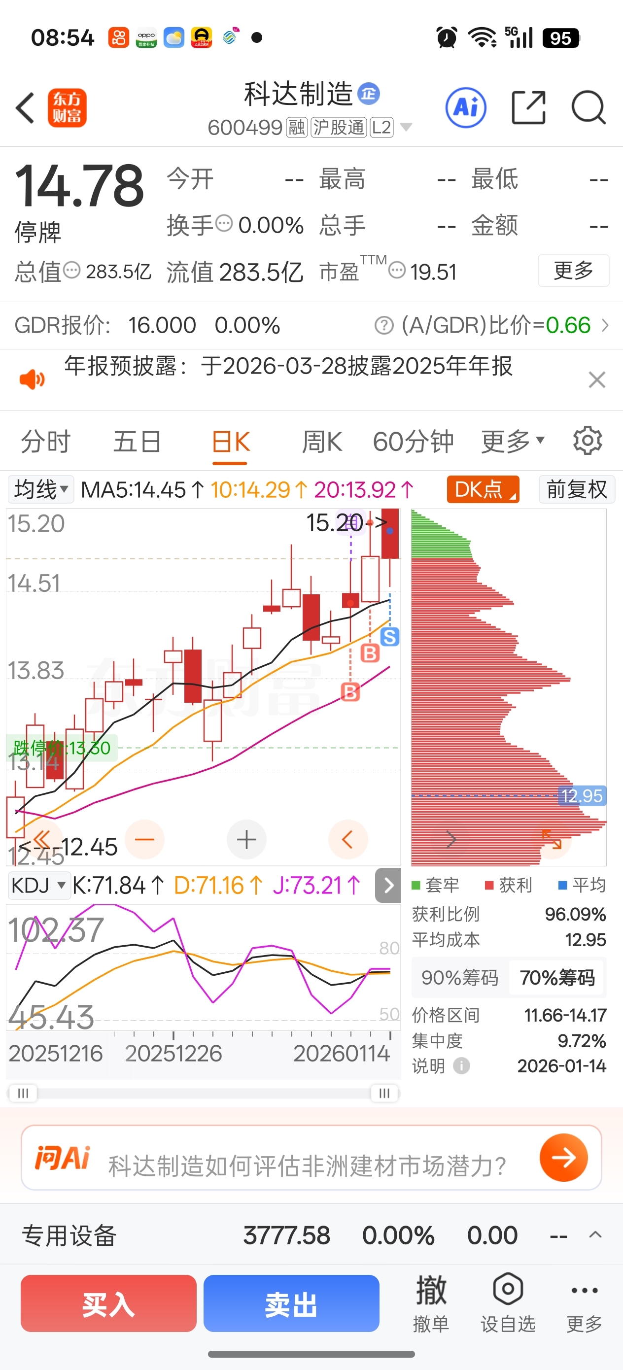 $科达制造(SH600499)$ 服了,感觉错失一个亿