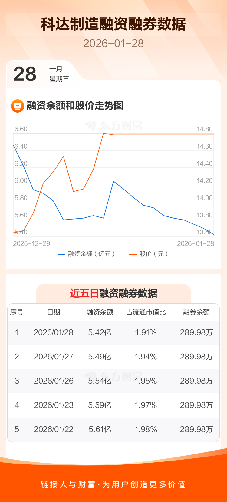 交易所最新数据显示,科达制造于2026年1月28日获融资买入0元,融资偿还693.05万元,当日融资净偿还693.05万元。目前,该股融资余额5.42亿,占流通市值比例为1.91%。
