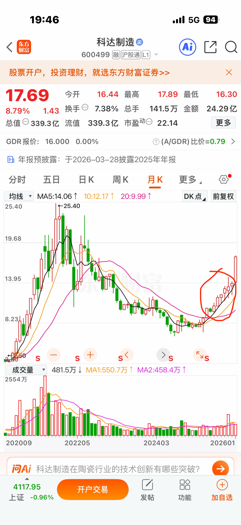 $科达制造(SH600499)$ 就凭这八个月建仓,你涨与不涨,我都在等你!