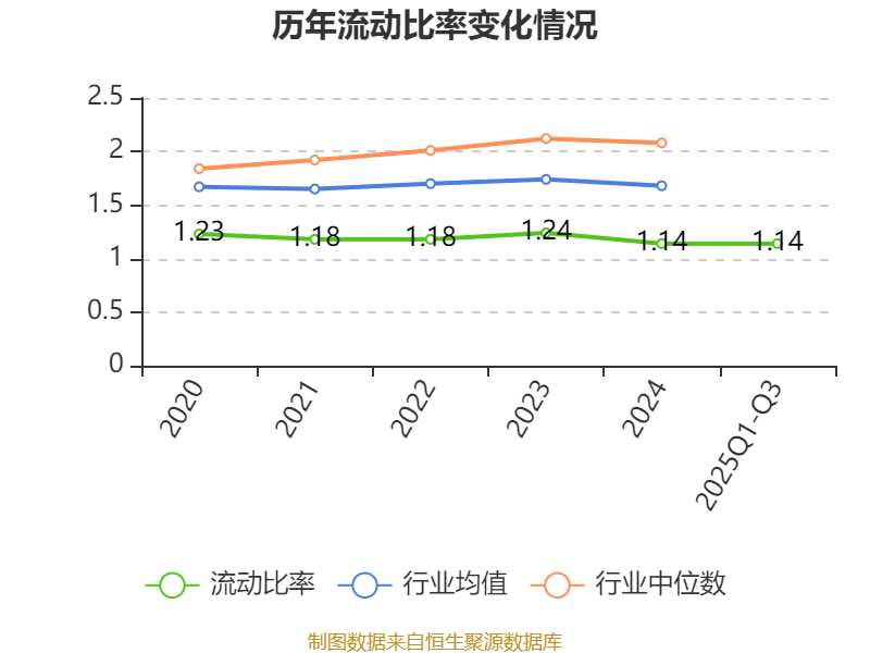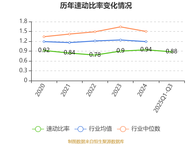 2025年前三季度,公司流动比率为1.14,速动比率为0.88。