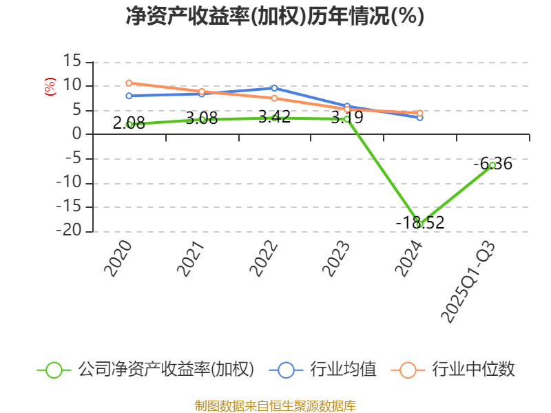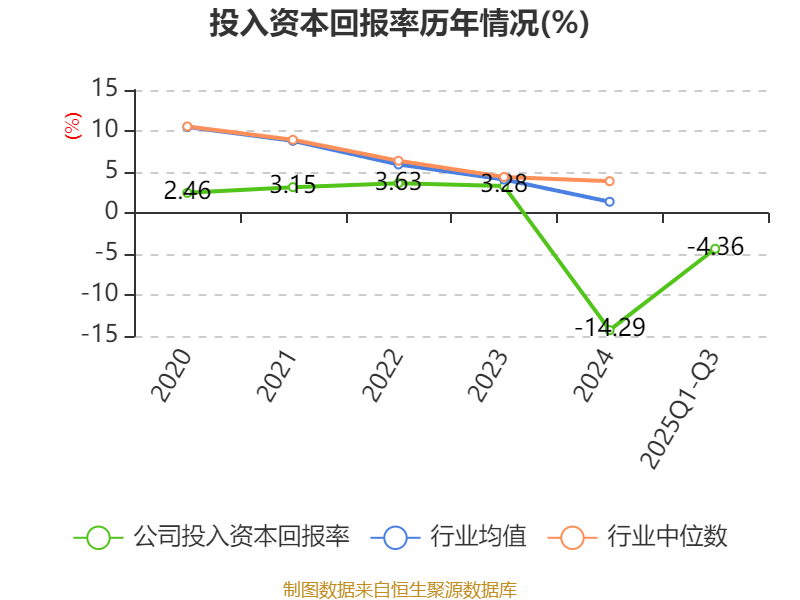 盈利能力方面, 2025年前三季度公司加权平均净资产收益率为-6.36%,同比上升1.11个百分点。公司2025年前三季度投入资本回报率为-4.36%,较上年同期上升1.66个百分点。
