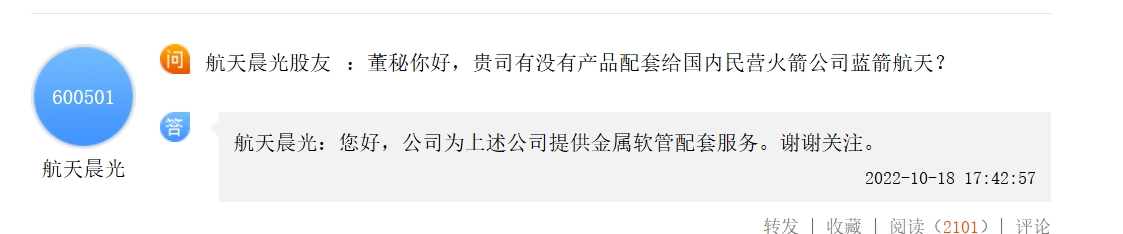 $航天发展(SZ000547)$ $航天动力(SH600343)$ $航天智装(SZ300455)$ 老龙航天晨光从三年前就已经说明与蓝箭航天合作。