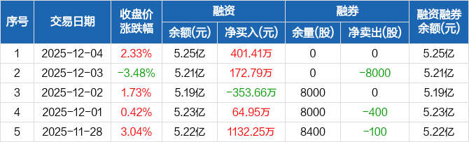 航天晨光:融资净买入401.41万元,融资余额5.25亿元(12-04)