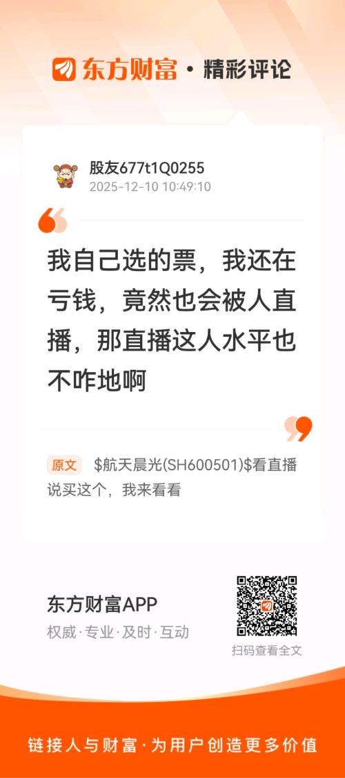 那我也能开直播?//@股友677t1Q0255 :我自己选的票,我还在亏钱,竟然也会被人直播,那直播这人水平也不咋地啊