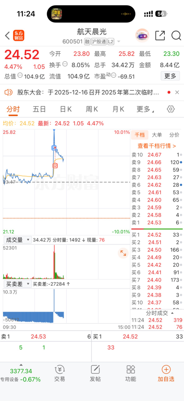 $航天晨光(SH600501)$ 这回落也太大了吧