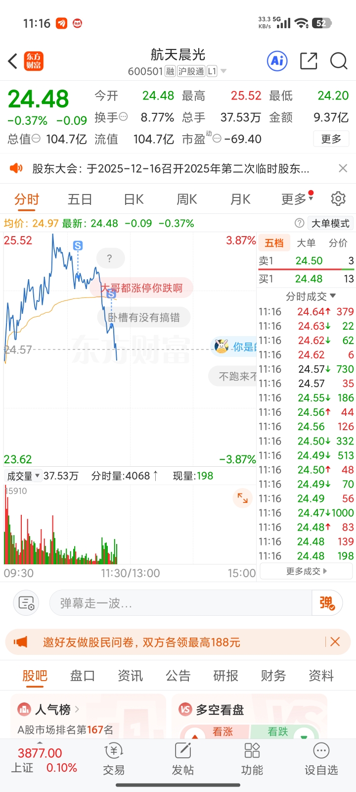 $航天晨光(SH600501)$ 你是真牛,扛不住