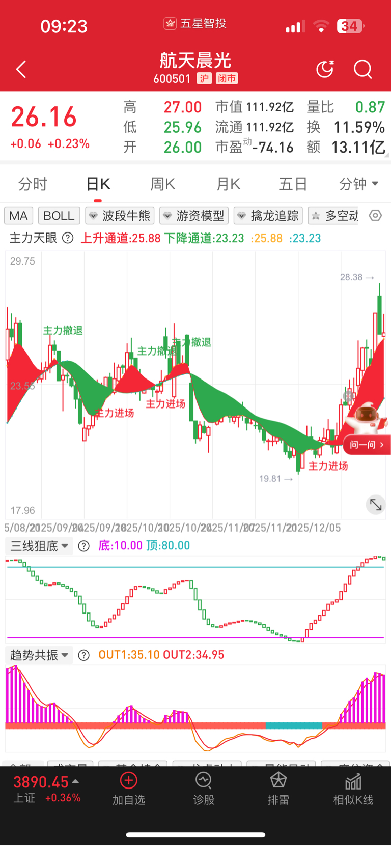 $航天晨光(SH600501)$ 高位,还是有回调风险