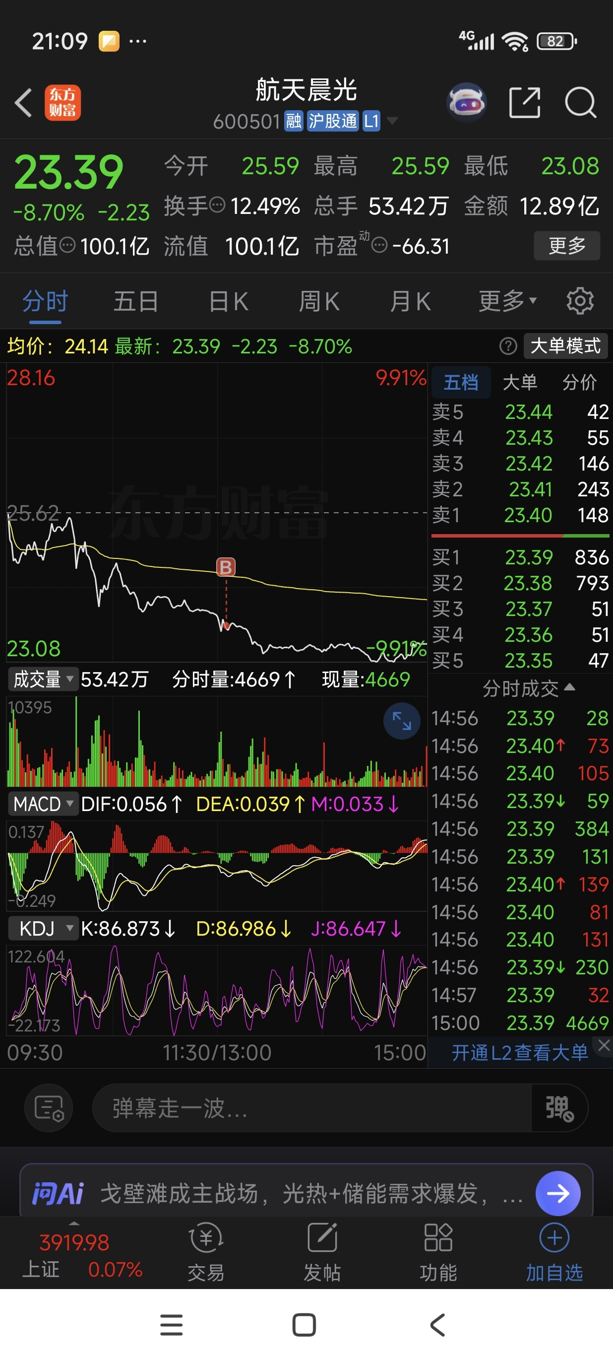 $航天晨光(SH600501)$ 我不会抄个底抄在半山腰了吧
