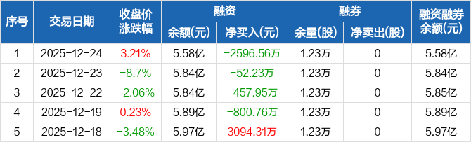 航天晨光:连续4日融资净偿还累计3907.5万元(12-24)