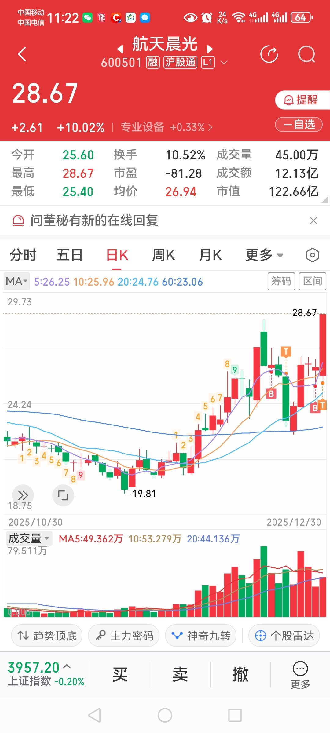 $航天晨光(SH600501)$ 还好吃上了,感谢感谢