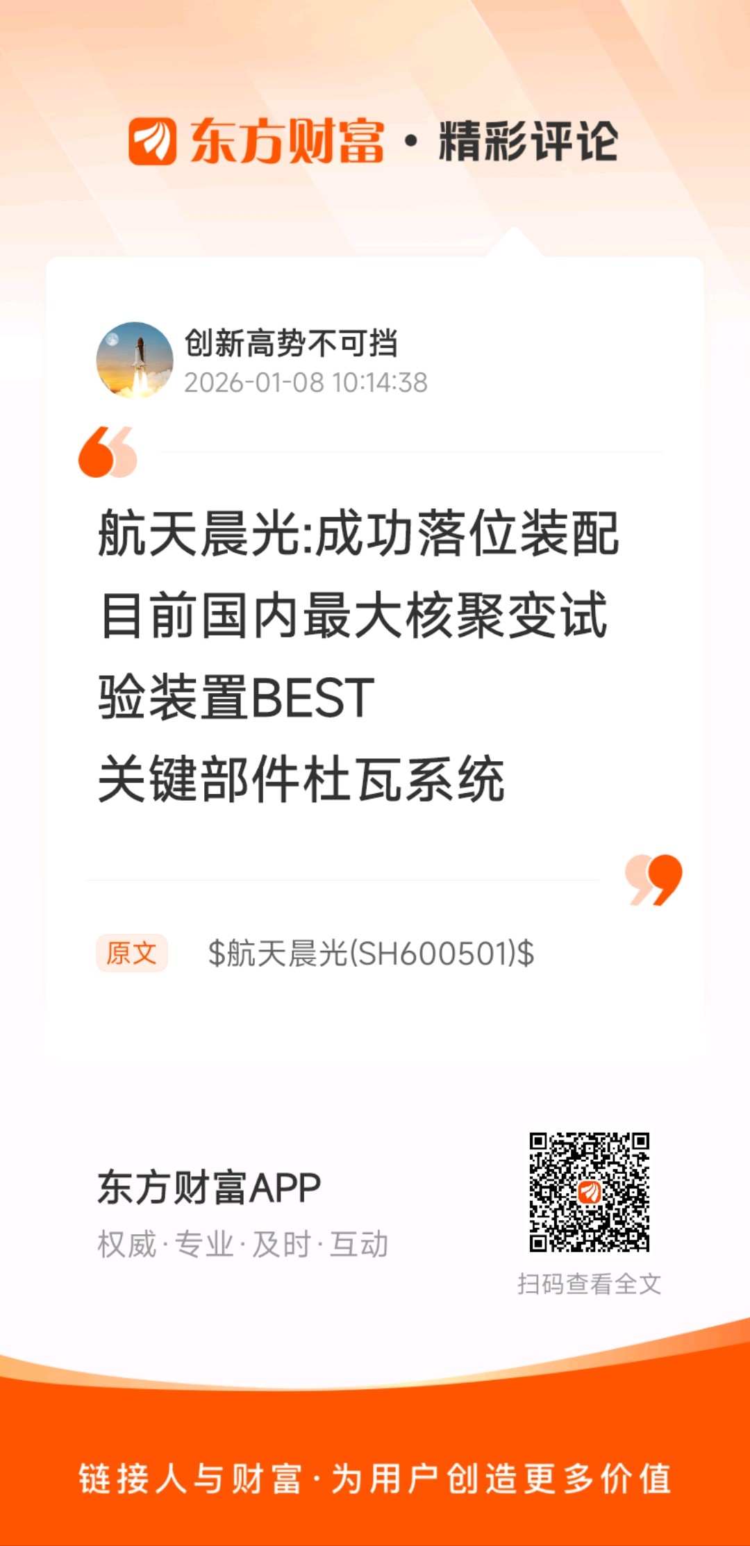 $航天晨光(SH600501)$