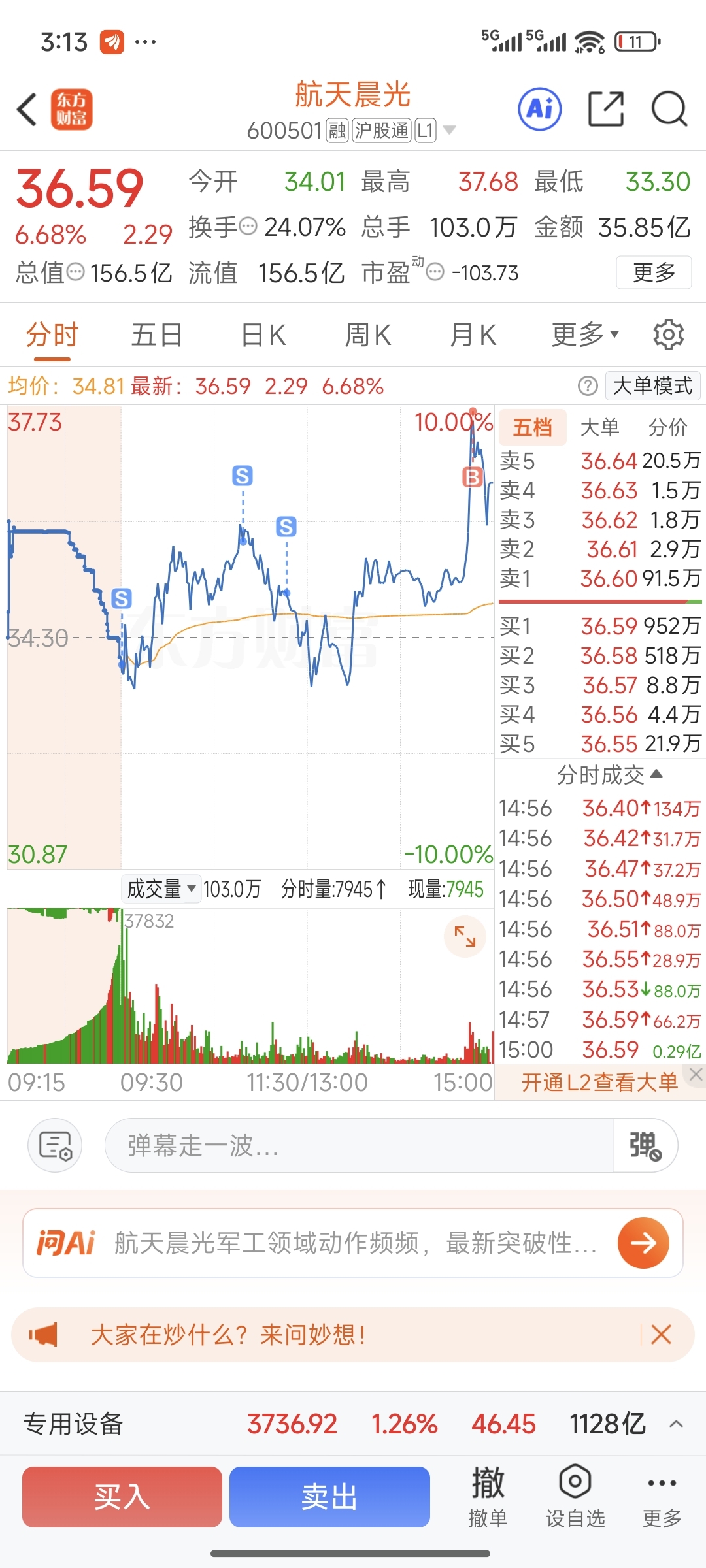 $航天晨光(SH600501)$  谁有我悲伤