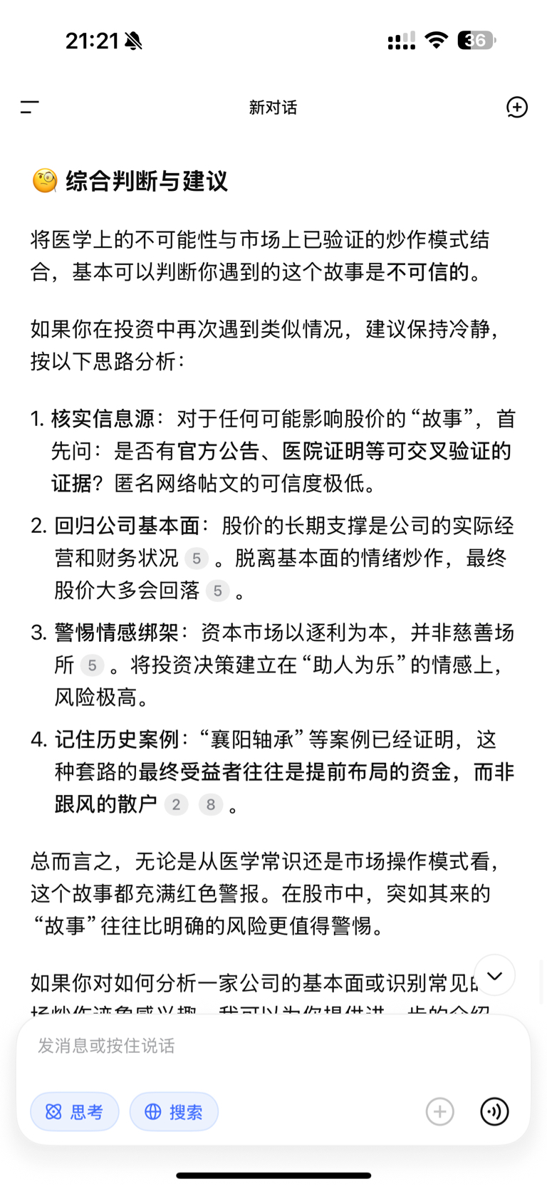 郑重声明:用户在财富号/股吧/博客等社区发表的所有信息(包括但不限于文字、视频、音频、数据及图表)仅代表个人观点,与本网站立场无关,不对您构成任何投资建议,据此操作风险自担。请勿相信代客理财、免费荐股和炒股培训等宣传内容,远离非法证券活动。请勿添加发言用户的手机号码、公众号、微博、微信及QQ等信息,谨防上当受骗!