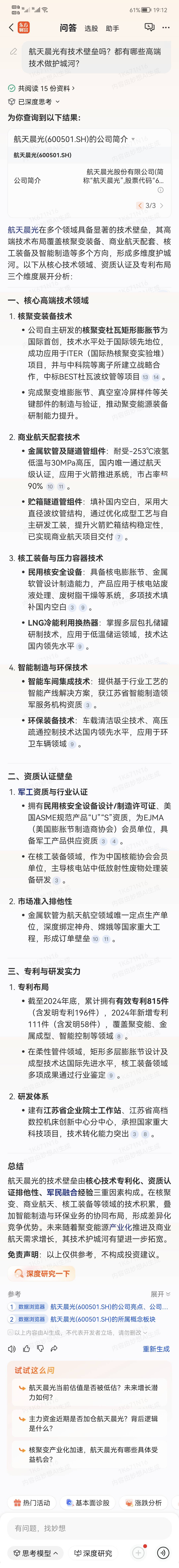 $航天晨光(SH600501)$ 航天晨光有技术壁垒吗?都有哪些高端技术做护城河?