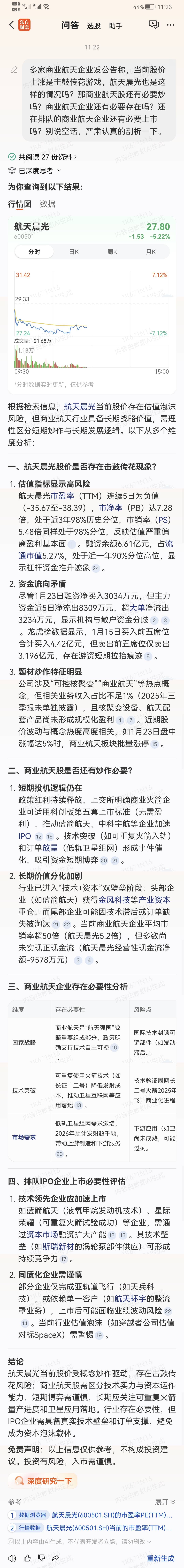 $航天晨光(SH600501)$ 多家商业航天企业发公告称,当前股价上涨是击鼓传花游戏,航天晨光也是这样的情况吗?那商业航天股还有必要炒吗?商业航天企业还有必要存在吗?还在排队的商业航天企业还有必要上市吗?别说空话,严肃认真的剖析一下。