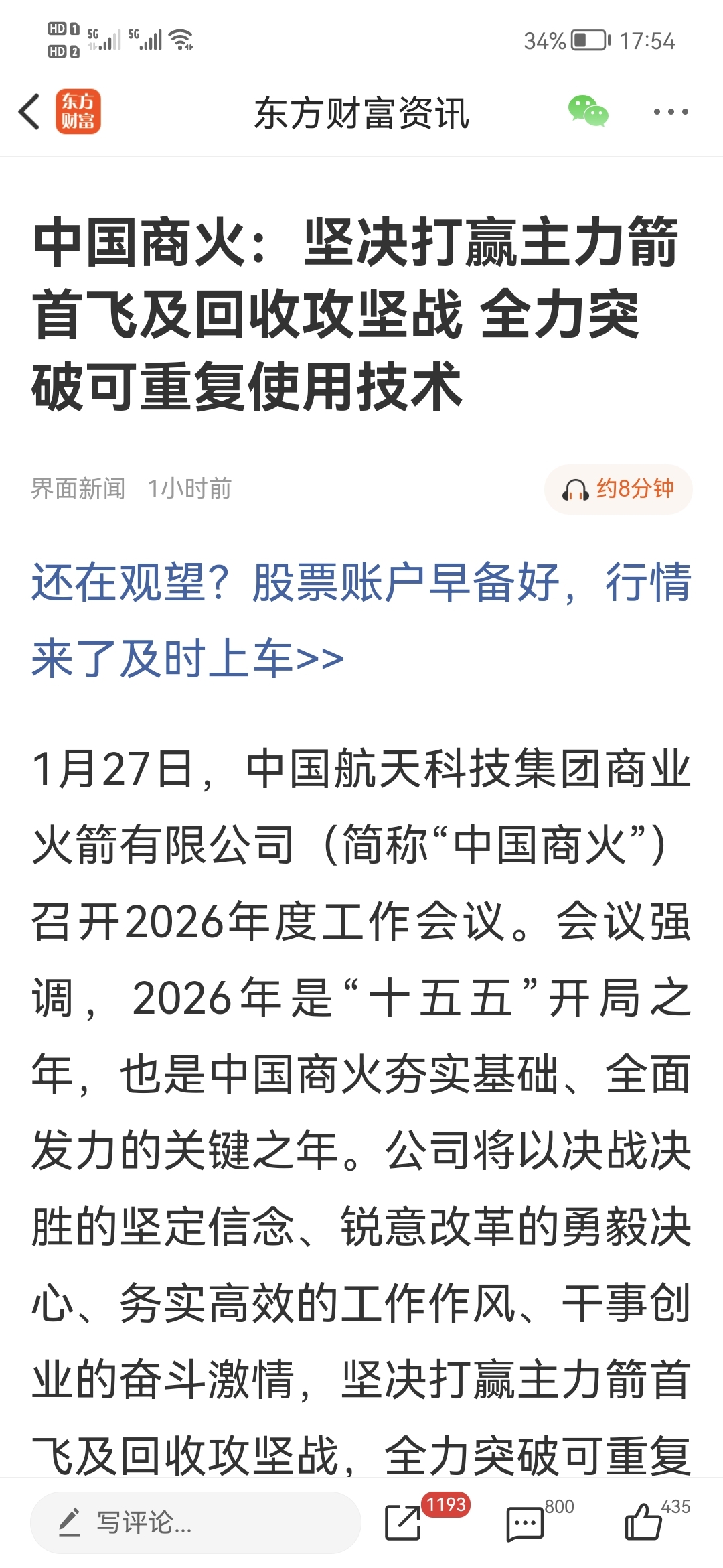 $航天晨光(SH600501)$ 让商业航天的子弹飞一会儿