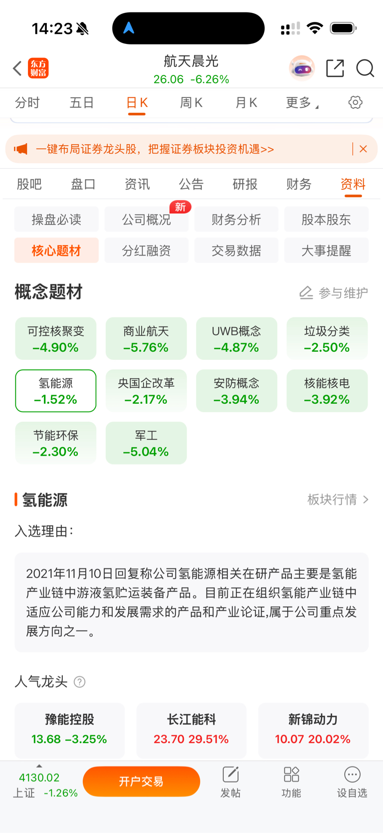 $航天晨光(SH600501)$ 有氢能源为什么不涨?