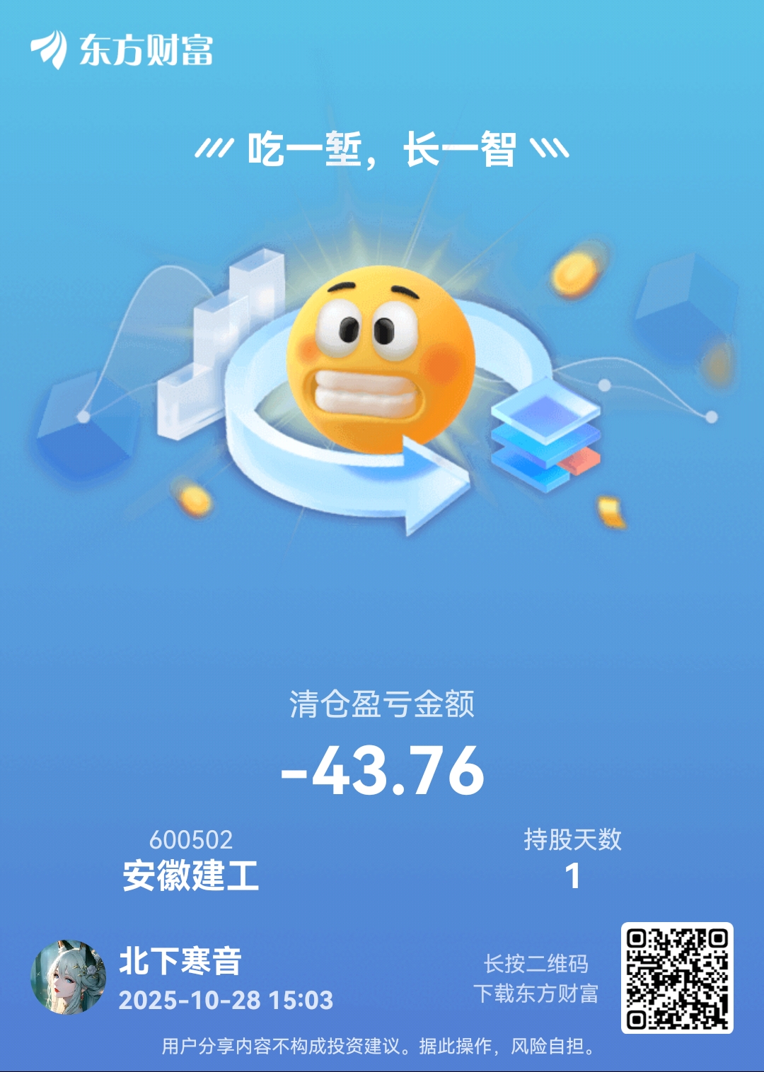 $安徽建工(SH600502)$ 昨天赚2.49%,今天又亏2.51%
