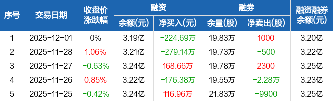 安徽建工:融资净偿还224.69万元,融资余额3.19亿元(12-01)
