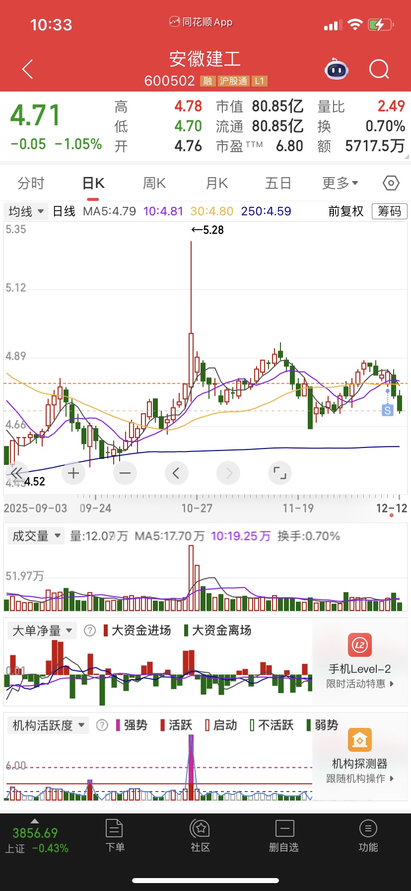 $安徽建工(SH600502)$ 4.84卖了三分之一,跌到4.68接回来
