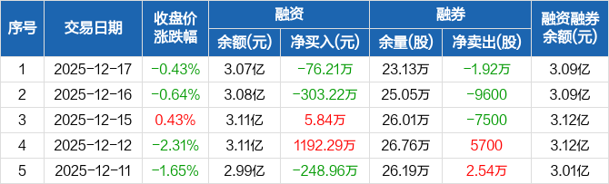 安徽建工:融资净偿还76.21万元,融资余额3.07亿元(12-17)
