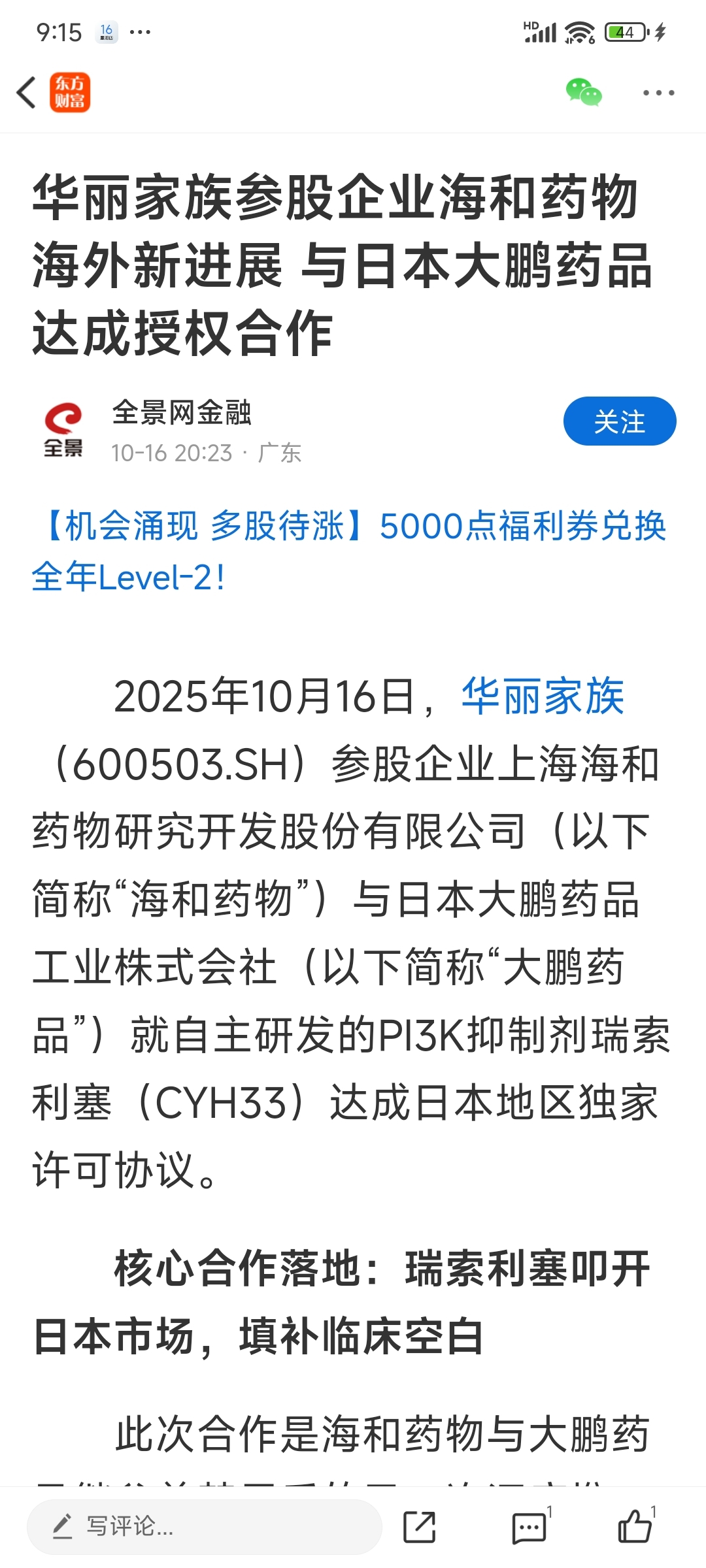 $华丽家族(SH600503)$ 下面是本站刚刚发布的文章。
