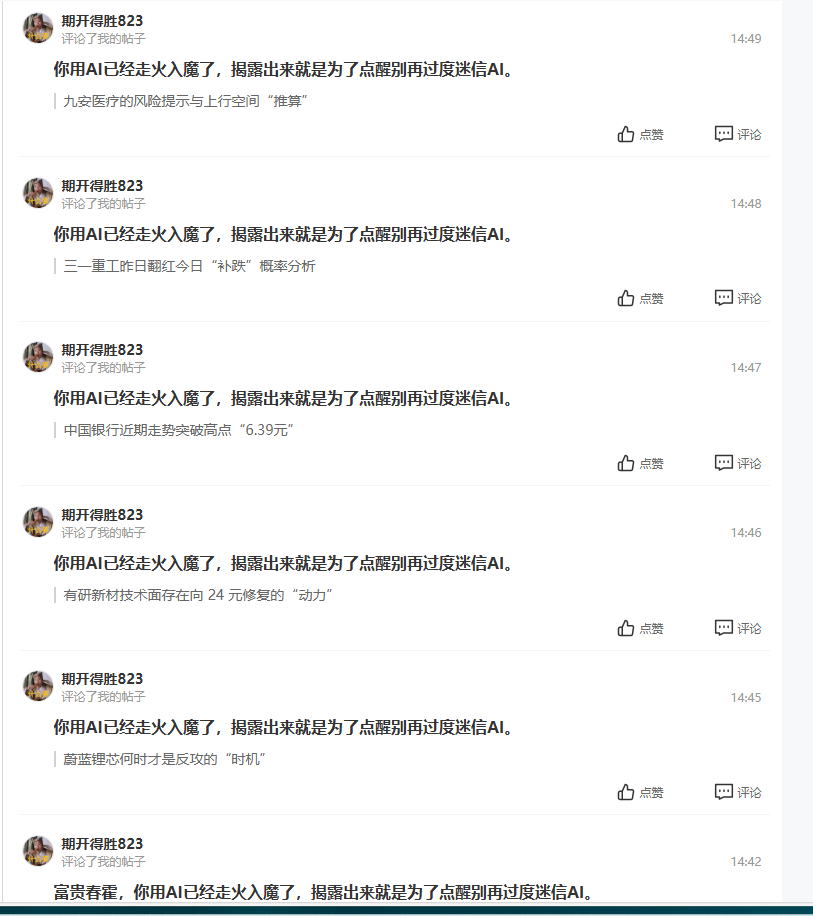 郑重声明:用户在财富号/股吧/博客等社区发表的所有信息(包括但不限于文字、视频、音频、数据及图表)仅代表个人观点,与本网站立场无关,不对您构成任何投资建议,据此操作风险自担。请勿相信代客理财、免费荐股和炒股培训等宣传内容,远离非法证券活动。请勿添加发言用户的手机号码、公众号、微博、微信及QQ等信息,谨防上当受骗!
