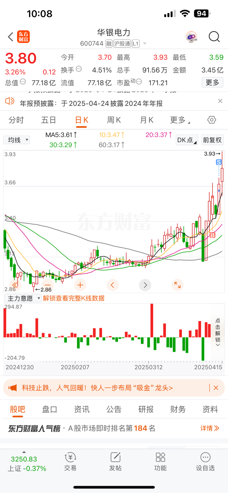$西昌电力(SH600505)$ 散户赚不到钱是有原因的,昨天华银卖飞了,今天看电力拉起来又最高追了西昌,