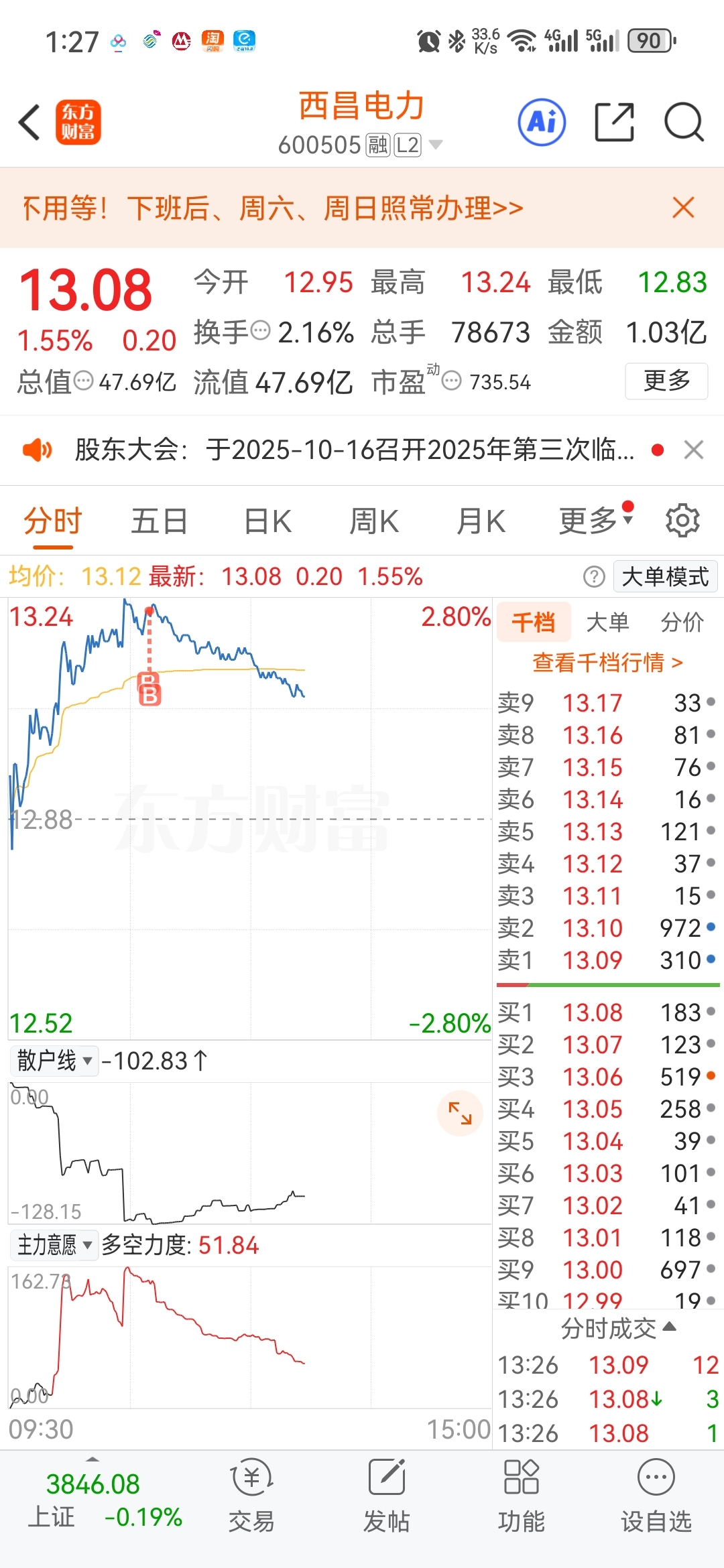 $西昌电力(SH600505)$ 有点针对我了