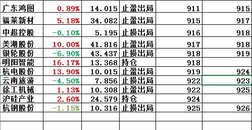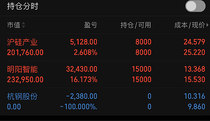 杭钢股份:今天走势不及预期,开盘低开三个多点,开盘有一波反抽,但反抽力度较弱,昨天水下低西的紫金在反抽中抛压出逃,在分时图跌破黄色均线反抽没有站上时选择止损下了。