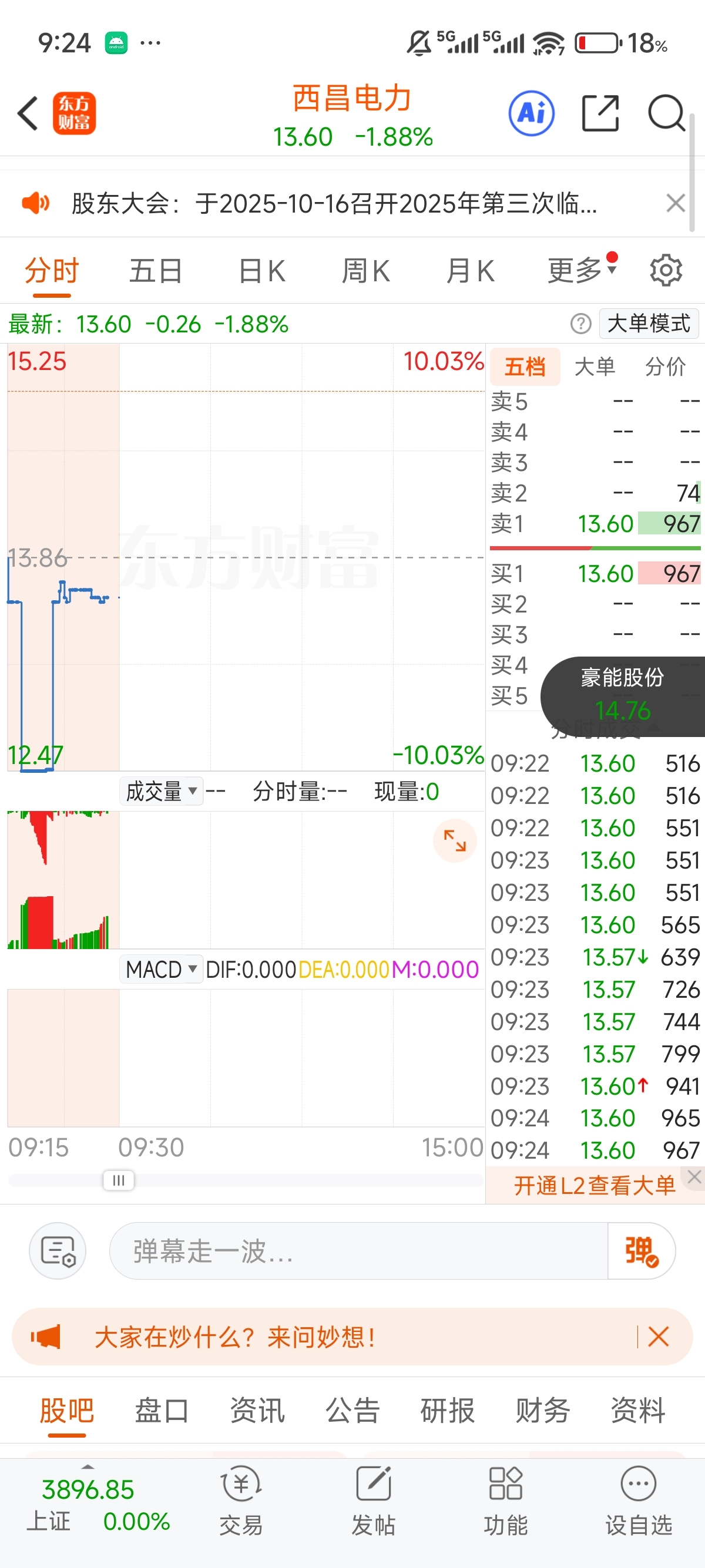 $西昌电力(SH600505)$ 你这突然来个跌是个什么意思