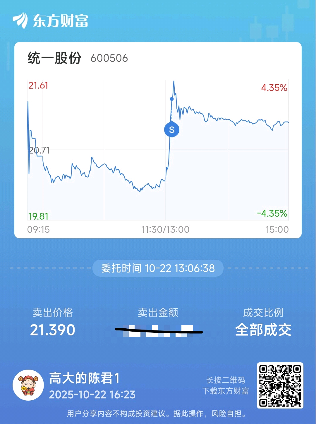 温馨提示: 1.根据《证券法》规定,禁止编造、传播虚假信息或者误导性信息,扰乱证券市场;2.用户在本社区发表的所有资料、言论等仅代表个人观点,与本网站立场无关,不对您构成任何投资建议。用户应基于自己的独立判断,自行决定证券投资并承担相应风险。《东方财富社区管理规定》